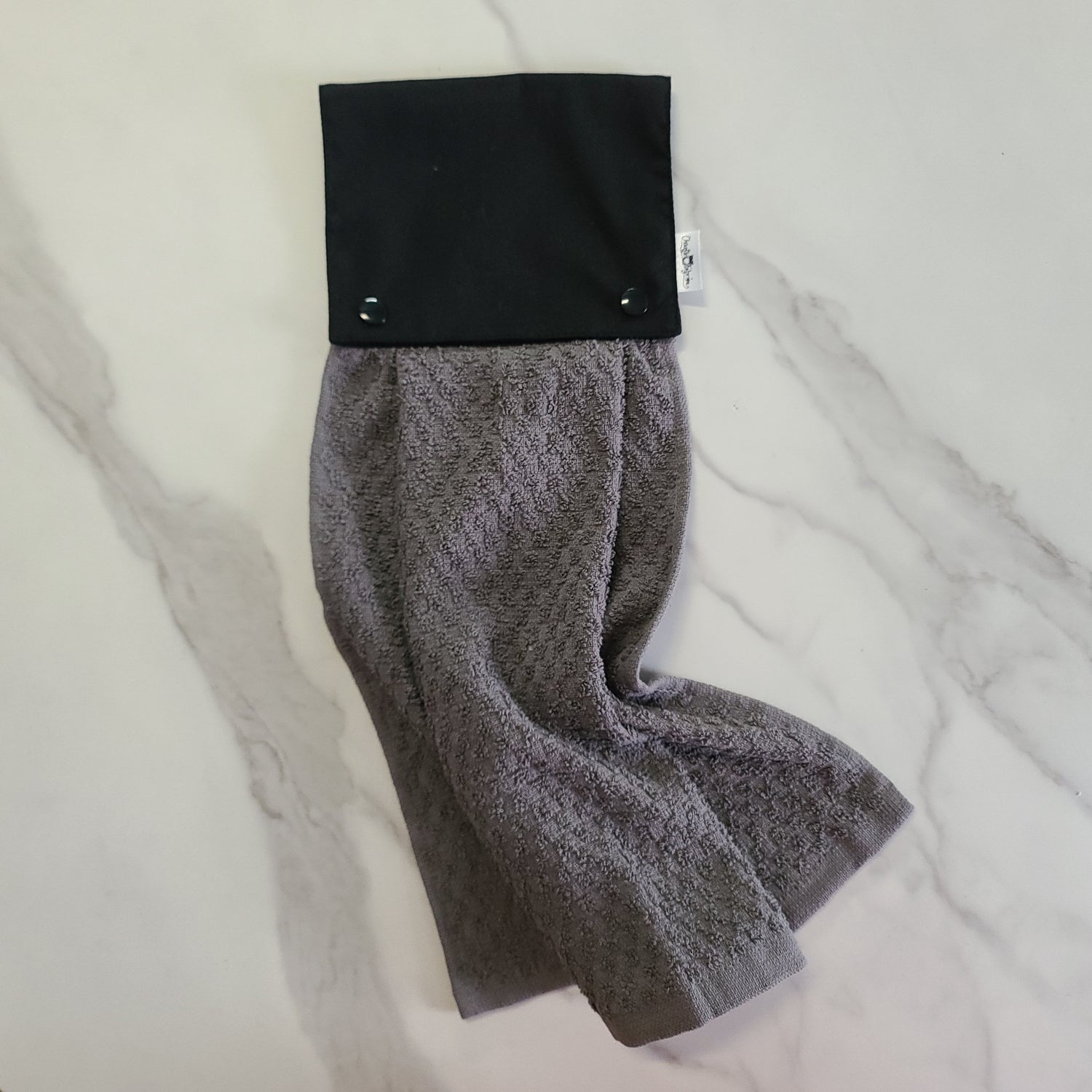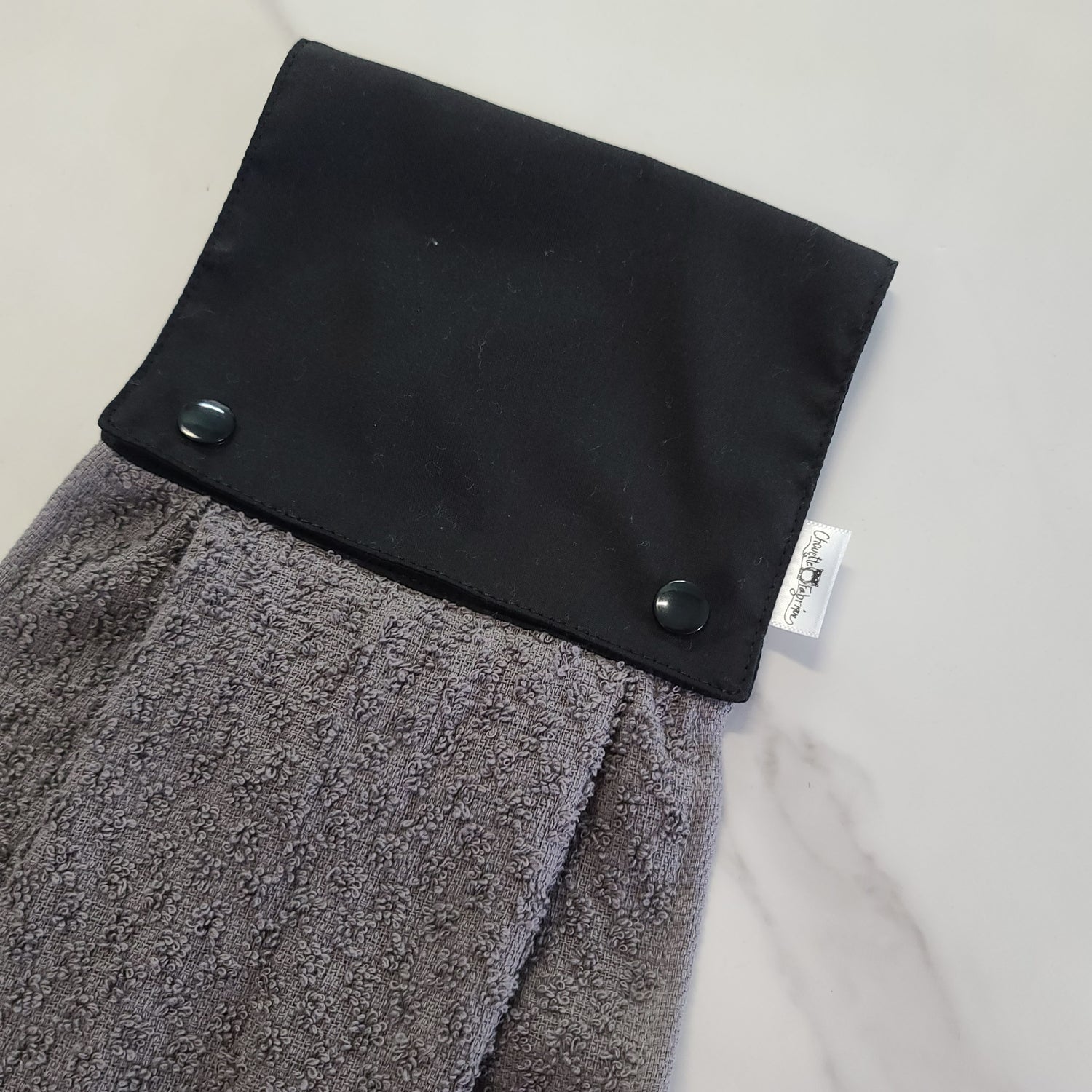 Essuie-mains - TEXTE PERSONNALISÉ - Serviette à mains - Cuisine/VR(Camping) - Serviette grise - Noir