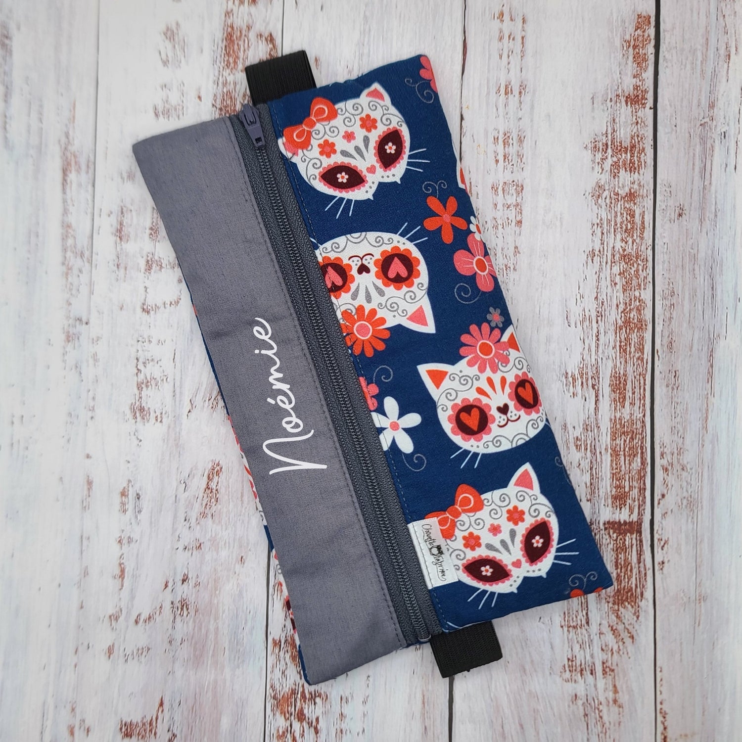 Étuis à crayons à élastique marque-page - Signet - Pour agenda, livres, etc. - Chats "Calavera"