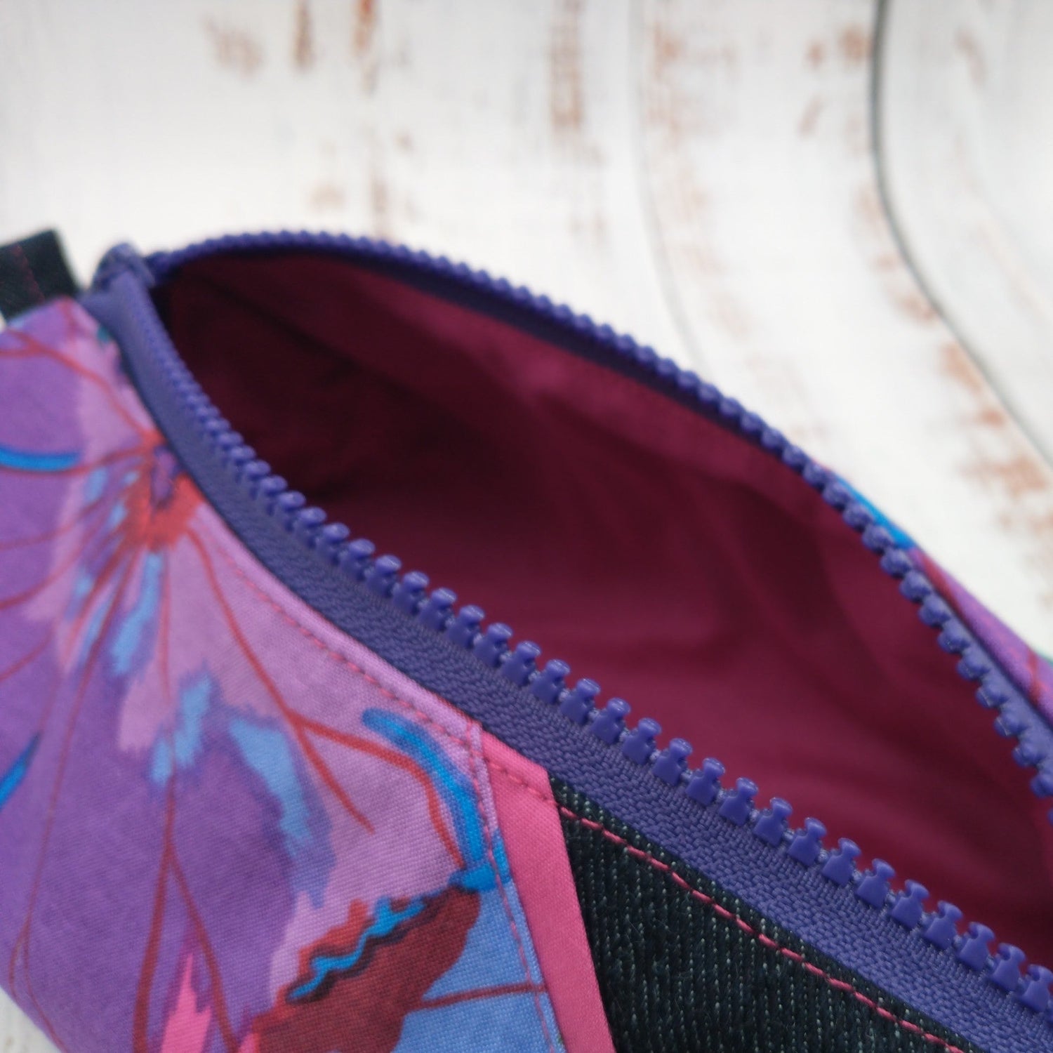 Étuis à crayons personnalisé / Trousse à cosmétiques - Fleurs Lilas/Fuchsia/Turquoise