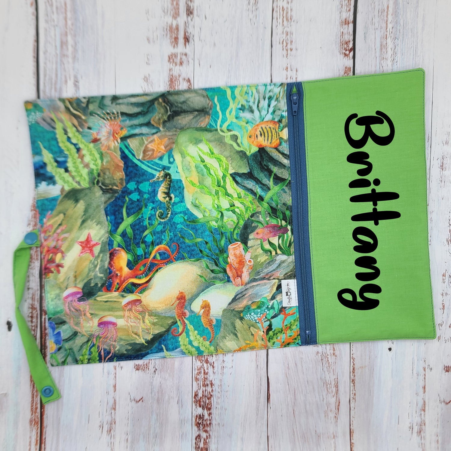 Napperon personnalise (Couleur d'impression au choix) - Animaux - Fonds marins - Pochette verte