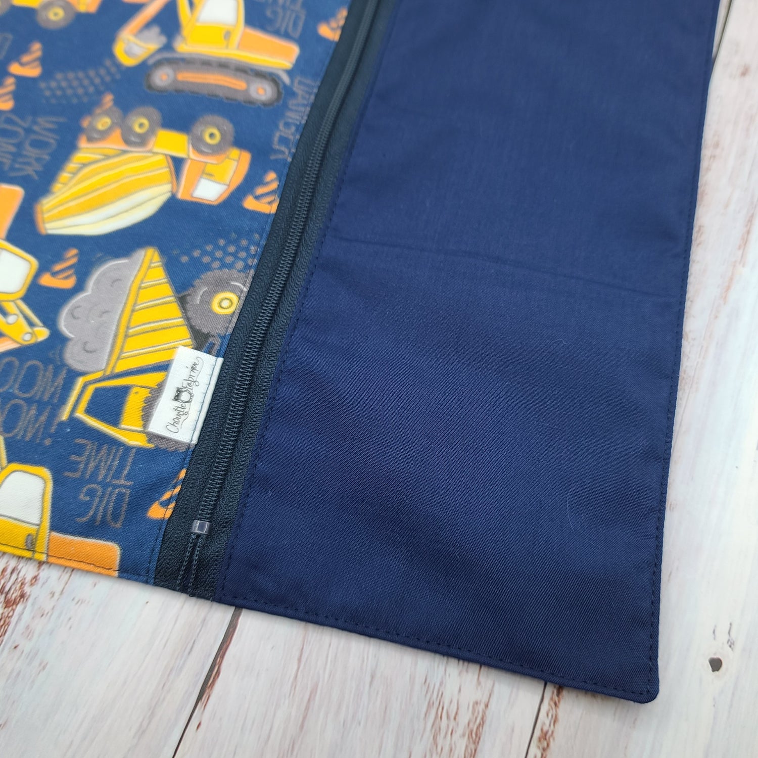 Napperon personnalise (Couleur d'impression au choix) - Véhicules - Camions de chantier (Marine/Jaune) - Pochette marine