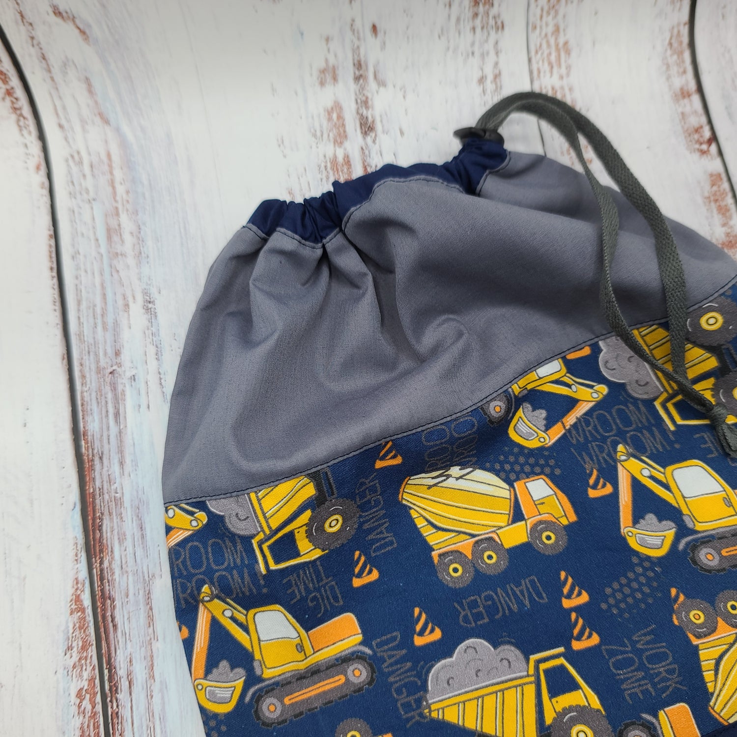 Sac de sport ou à souliers - Personnalisé - Véhicules - Camions de chantier (Marine/Jaune) - Haut gris