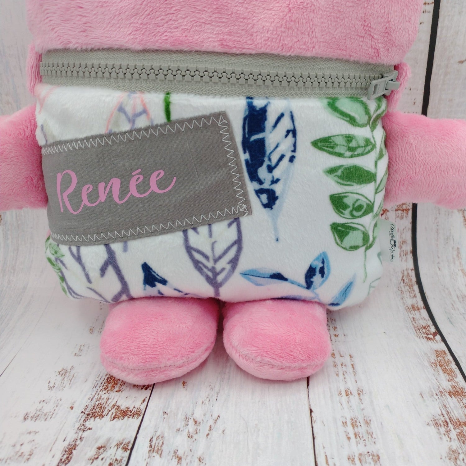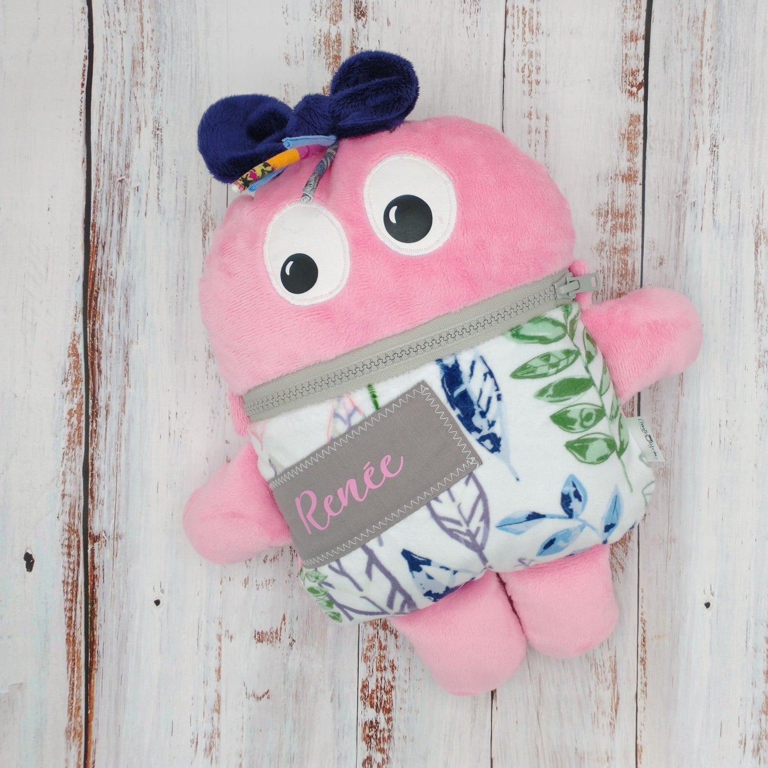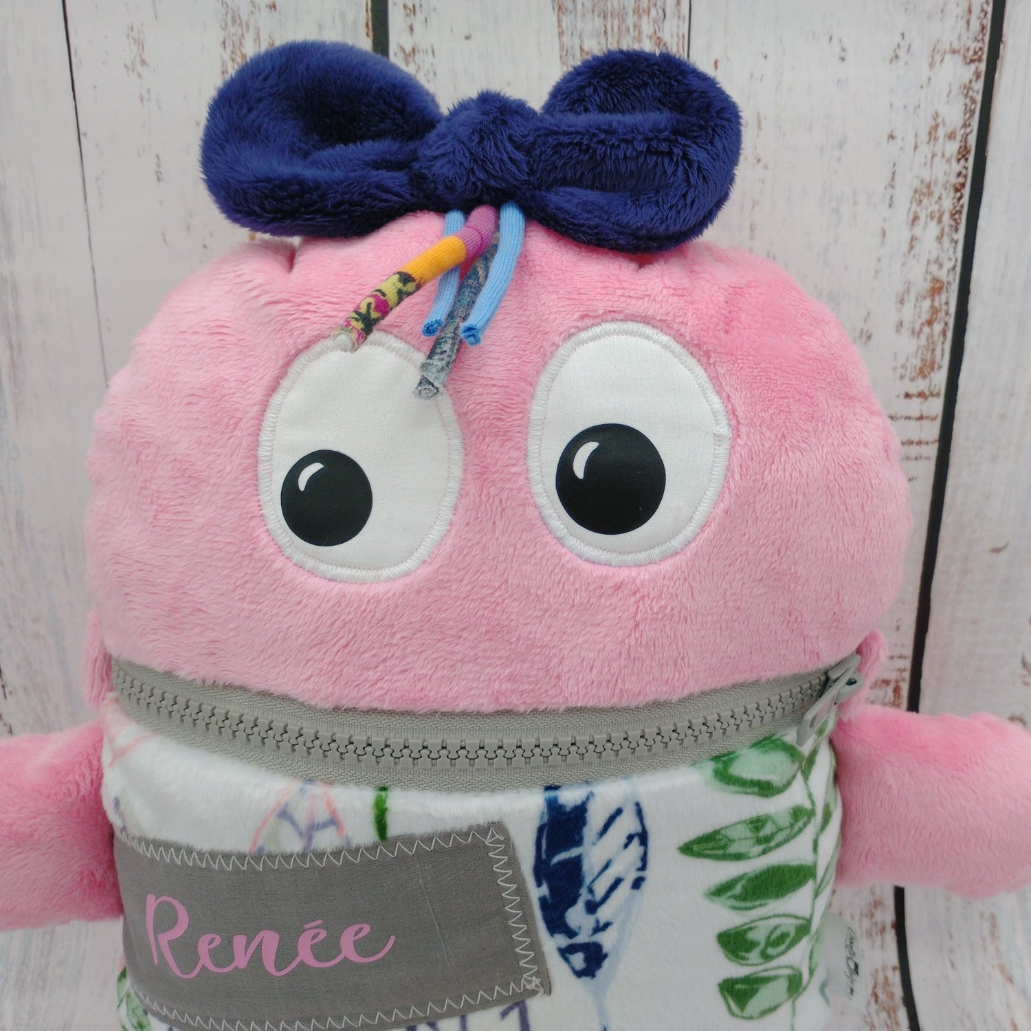 Toutou monstre mangeur de peurs, secrets, etc. - Feuillage Vert Violet et Rose - Personnalisé au prénom de l'enfant