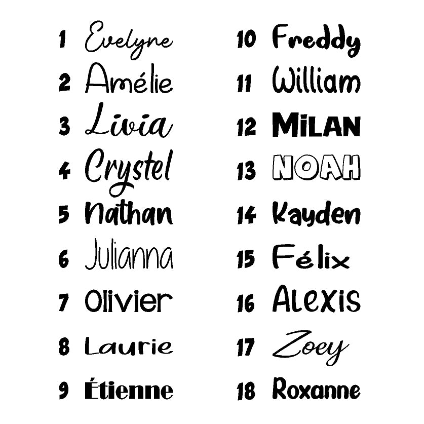 - Personnalisation (Prénom et/ou Nom) dans la couleur de votre choix.